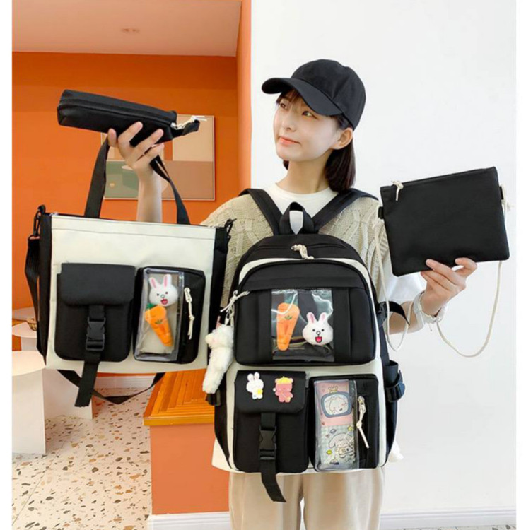 ست پنج تیکه کوله پشتی وکیف فانتزی خرگوش وهویج جنس برزنت ضداب وارداتی