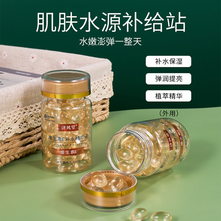 ویتامین E به استحکام دیوارههای مویرگهای پوستی و تقویت رطوبت و قابلیت ارتجاعی پوست کمک میکند و به عنوان یک مادهی مغذی طبیعی ضدِ پیری در بدن عمل میکند. این کپسول ها جهت رفع چروک ها و خطوط ناشی از آفتاب و پیر شدن است و مناسب برای پوست های نرمال تا خشک می باشد.