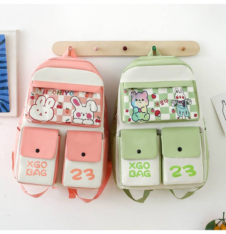 قسمت جلویی کیف با طرح چاپی خرگوشهای بامزه تزئین شده که استایل کودکانه و دلنشینی بهش میده. مناسب برای مدرسه، دانشگاه یا سفرهای کوتاه.