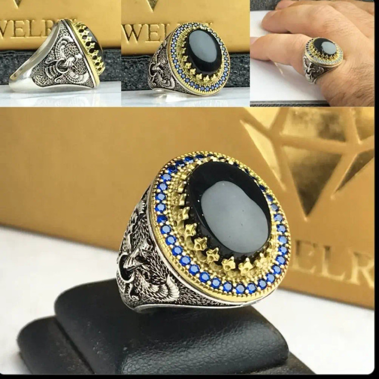 انگشترعقیق یمن مشکی اصل سایزدست مشتری ساخته میشه