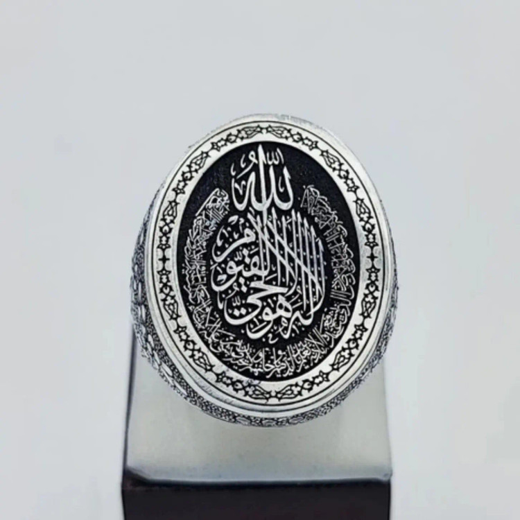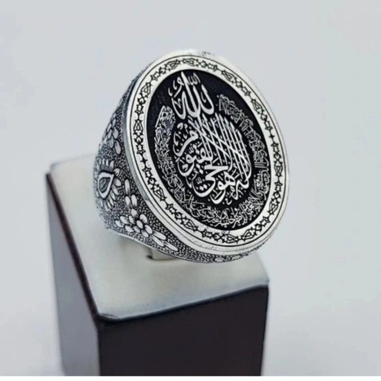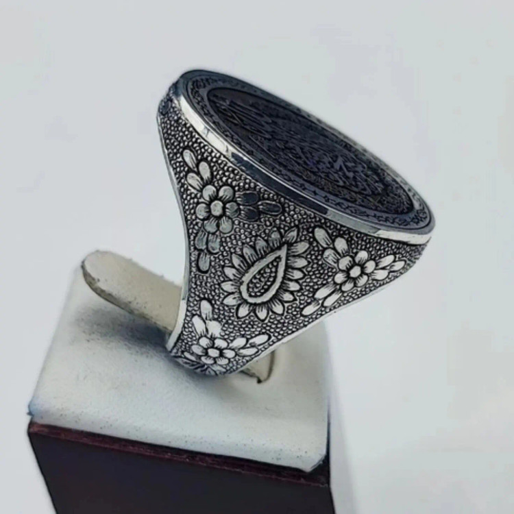 انگشتر نقره کلکسیونی سیاه قلم کاری شده ایت الکرسی بسیارفاخر تک ونایاب حراج