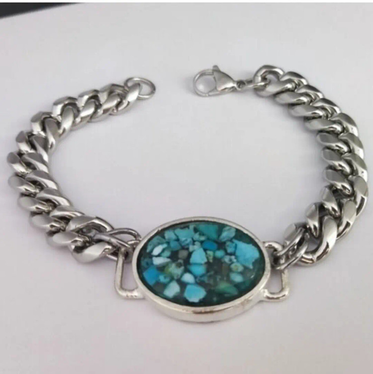 دستبند استیل پلاک دار مدل کارتیر و رنگ ثابت پلاک فیروزه کاری زیبا و خاص