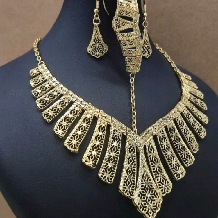 سرویس زنانه طرح عربی برنج ابکاری طلا کاملا مشابه طلا غیرقابل تشخیص رنگ ثابت