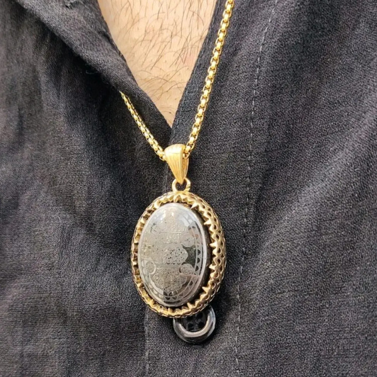 گردنبند وان یکاد حک شده روی سنگ حدید بهمراه زنجیر ۶۰سانتی استیل و رنگ ثابت ویتالی