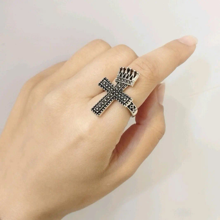 انگشتر صلیب تاج دار ،انگشتر صلیب فری سایز،انگشتر صلیب