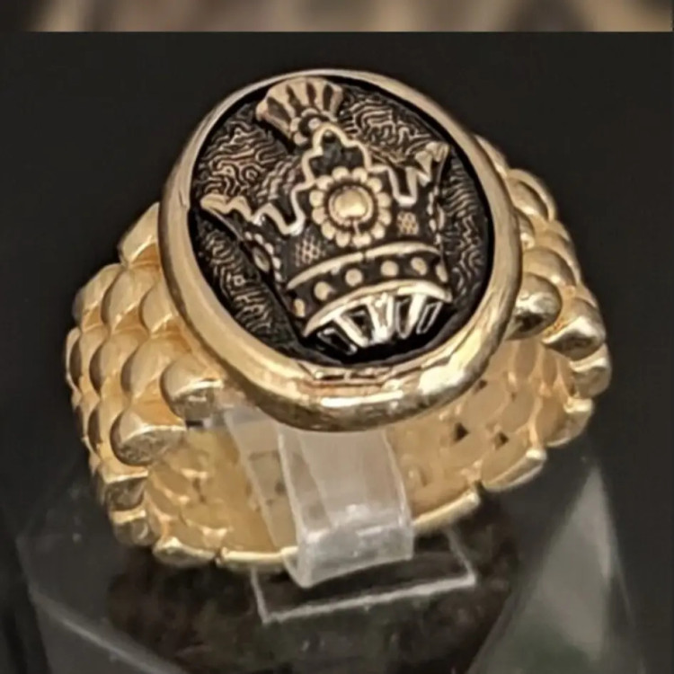 انگشترطلاروس اصل رکاب رولکسی طرح تاج رنگ ثابت عمری کاملا غیرقابل تشخیص ازطلای اصلی سایز 9 وده و11 موجوده