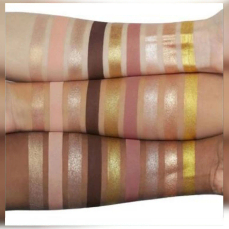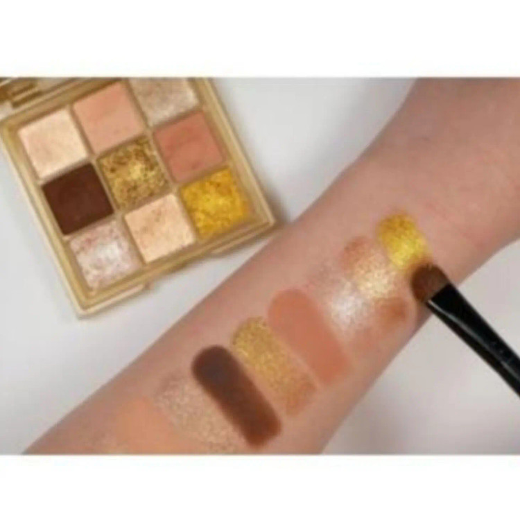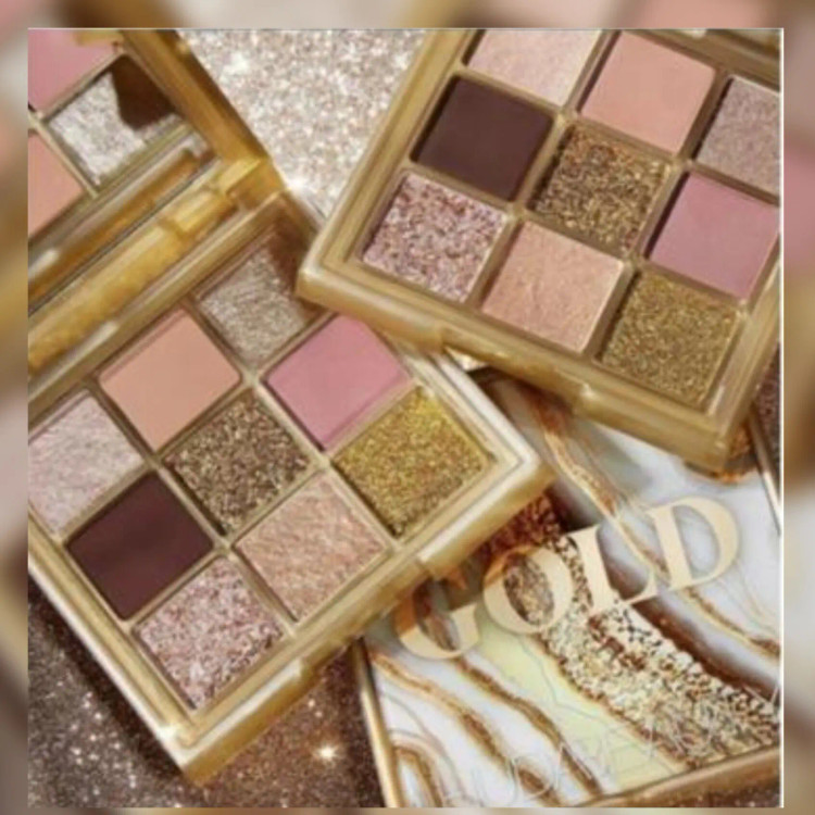 پالت سایه هدی بیوتی مدل گلد Huda Beauty Gold Eyeshadow شامل 9 رنگ جذاب پیگمنت فوق العاده عالی دارای آیینه داخل درب پالت ماندگاری بسیار بالا روی پلک رنگ های مات و شاین خاص جدیدترین سایه هدی بیوتی