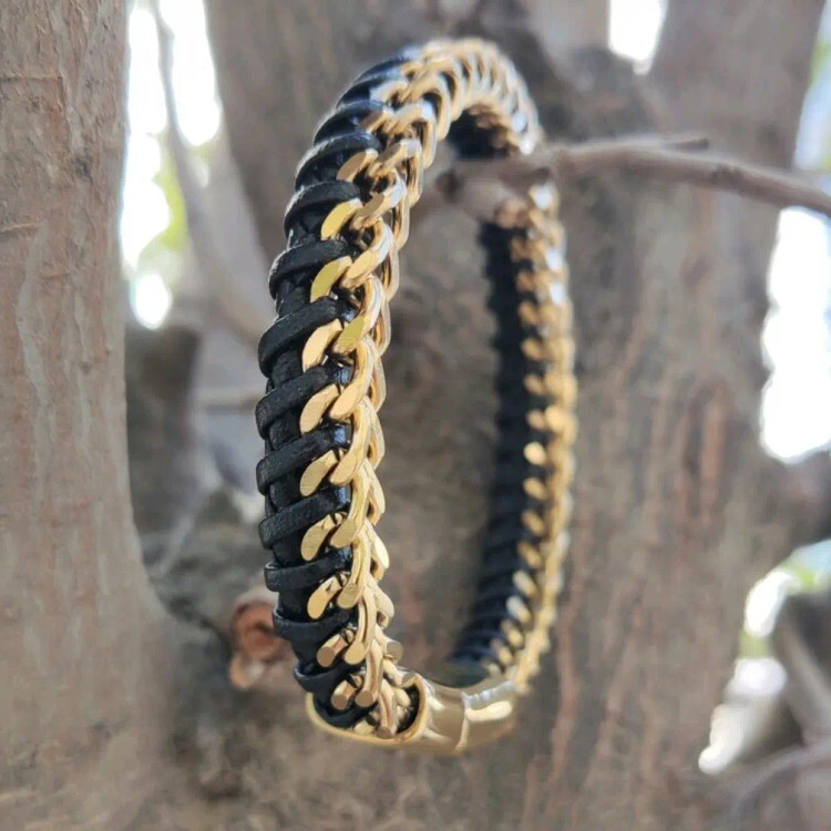 دستبندمردانه کارتیرهمراه بابافت چرم
