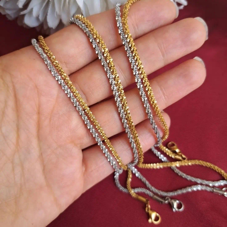 زنجیر وارداتی رنگ ثابت ،کاملا مشابه طلا بادرخشش فوق العاده چشم گیر وجذاب مناسب اقایان وخانم ها